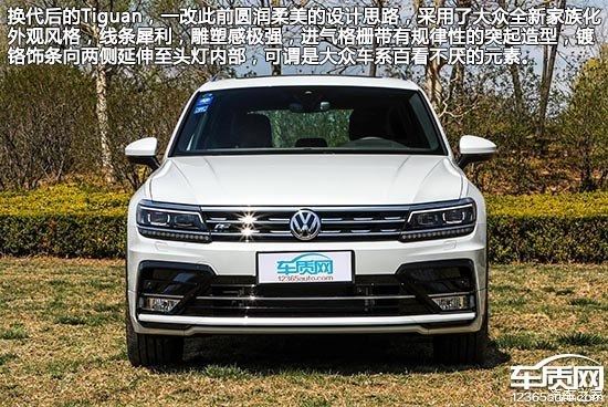 換代后的Tiguan,一改此前圓潤(rùn)柔美的設(shè)計(jì)思路,采用了大眾全新家族化外觀風(fēng)格,線條犀利,雕塑感極強(qiáng),進(jìn)氣格柵帶有規(guī)律性的突起造型,鍍鉻飾條向兩側(cè)延伸至頭燈內(nèi)部,可謂是大眾車系百看不厭的元素。進(jìn)口版本提供了國(guó)產(chǎn)后見不到的R-Line套件,亮黑色飾板與倒梯形設(shè)計(jì)頗具原廠改裝氣息,同時(shí)前臉面積也被進(jìn)一步擴(kuò)大,給人中型SUV的既視感。