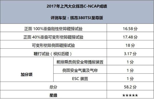 ????????輝昂成為“國家名片”,出色的安全性能同樣至關(guān)重要。在2017年度C-NCAP第一批車型的評價結(jié)果中,輝昂獲得58.2的高分,是C-NCAP 2015年版規(guī)則實施以來的最高分。