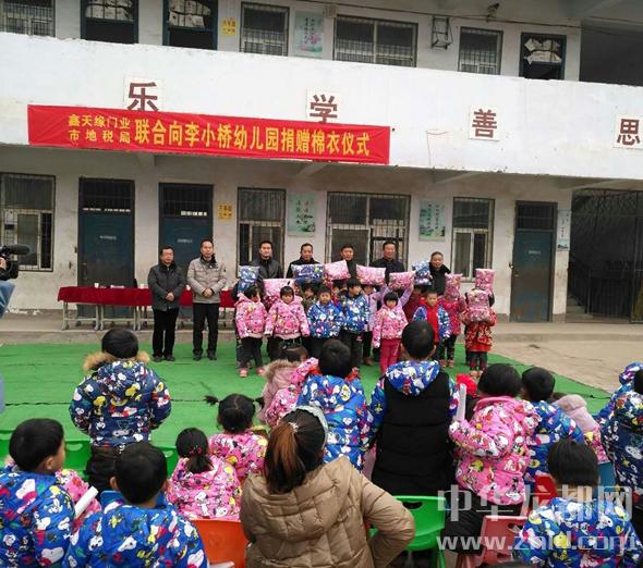 1月22日下午,市地稅局駐村工作隊聯(lián)合愛心企業(yè)到太康縣王集鄉(xiāng)李小橋幼兒園開展“送溫暖、獻愛心”棉衣捐贈活動。當天,共有100多名留守兒童領到了御寒棉衣。記者馬治衛(wèi)通訊員蘇童攝