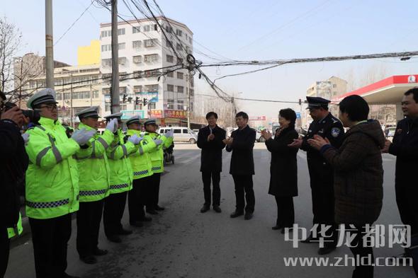 一路慰問一路播撒黨的溫暖。在鄲城縣城科技大道與人民路口,趙素萍一行專門下車慰問了一線交警?!袄洳焕??小伙子。這衣服暖和不?”趙素萍用手摸了摸一位交警的值勤服問?!安焕?,這是俺縣里才配發(fā)的保暖服,防雪防風防雨。再說了,省領(lǐng)導來慰問,俺心里更暖和。”交警的機靈回答,把大家逗得哈哈大笑。趙素萍說:“你們不畏嚴寒的辛勤付出保障了城市的暢通,我代表省委、省政府向全縣民警同志們致以節(jié)日的問候,并通過你們向你們的家人表示節(jié)日的祝福,祝愿大家新春愉快,闔家幸福,身體健康。”
