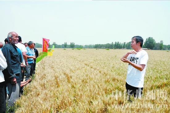 昨日下午,小麥專家在周口市天華農(nóng)業(yè)合作社魏集鎮(zhèn)小麥生產(chǎn)基地察看小麥長勢。今年該合作社種植優(yōu)質(zhì)小麥2萬多畝,預(yù)估畝產(chǎn)652公斤。記者 付永奇 攝