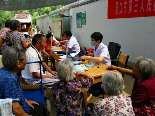中華龍都網(wǎng)訊(周口報(bào)業(yè)全媒體記者 高洪馳 通訊員 李四軍)6月22日,周口市第三人民醫(yī)院組織該院外科、內(nèi)科和中醫(yī)科醫(yī)護(hù)人員,走進(jìn)川匯區(qū)文莊社區(qū),舉辦“健康扶貧巡回義診”活動(dòng),免費(fèi)為村民送醫(yī)、送藥、送健康,受到文莊村民的歡迎。