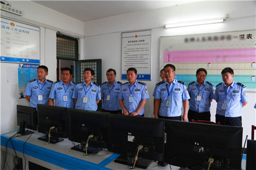 陳鳳祥在看守所監(jiān)管大隊長郭景靈、教導(dǎo)員譚林生的陪同下,參加了集體交接班,并先后來到收押大廳、監(jiān)控室、巡視道、監(jiān)區(qū)、監(jiān)控中心等重點部位進行了實地查看,要求全體監(jiān)所民警嚴格落實各項管理工作制度,全力保障監(jiān)所安全。