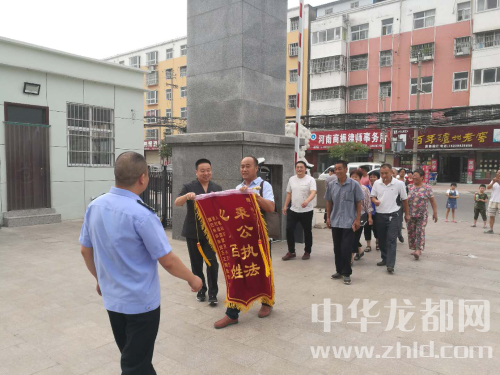 中華龍都網(wǎng)訊 (周口報(bào)業(yè)全媒體記者 陳永團(tuán) 通訊員 智艷威 戚娟娟)7月12日上午,家住商水縣巴村鎮(zhèn)的九名村民,將一面標(biāo)著“秉公執(zhí)法,心系百姓”的錦旗送到商水縣人民法院執(zhí)行局,以感謝庭長(zhǎng)苑慶宏在執(zhí)行中公正高效的司法行為,并對(duì)其在執(zhí)行案件中情系百姓的工作態(tài)度給予高度贊揚(yáng)。