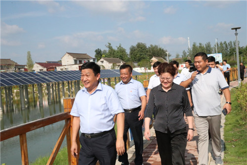 當日下午,張穎波一行在太康縣縣長李錫勇,縣委副書記、縣政法委書記王程清等領導的陪同下,先后來到河南玉柏生物科技有限公司老冢鎮(zhèn)豆丹養(yǎng)殖基地、劉寨漁光互補基地、劉寨村委大院、劉寨文化大院、劉寨扶貧車間及構樹產業(yè)扶貧基地等處考察。
