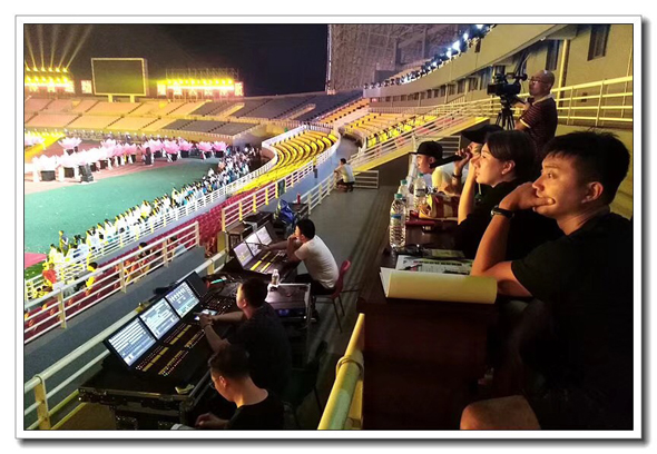 省運會開幕式第二篇章《幸福家園》,昨晚八點在周口體育場對光排練,直至凌晨兩點結束。葛英 攝