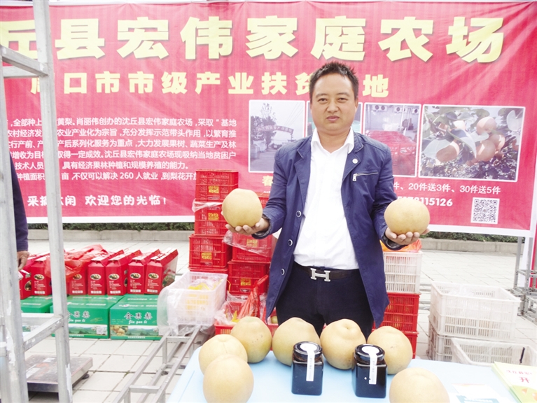 9月22日,沈丘縣舉辦第一個(gè)中國(guó)農(nóng)民豐收節(jié)慶?;顒?dòng),來自全縣22個(gè)鄉(xiāng)鎮(zhèn)(辦事處)的35家農(nóng)民種植、養(yǎng)殖合作社和家庭農(nóng)場(chǎng),展示了槐山藥、黃金梨、冬棗、木瓜、“袖珍”黃瓜、活體蜈蚣、蝎子等120余個(gè)品種。