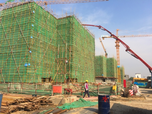 據(jù)該項目副總經(jīng)理王志強介紹,目前該項目南地塊基坑支護主體已經(jīng)完成,正在進行土方的開挖,已出土約20萬立方米,完成總出土量的50%,地下室底板抗浮錨桿完成30%。中區(qū)地塊共13棟住宅,其中2棟已施工至主體7層,2棟施工至主體5層,其余9棟正在進行正負零以下主體施工。一字型商業(yè)金街主體施工已經(jīng)封頂 。萬達展示中心已于10月27日正式對外開放。北地塊商業(yè)區(qū)正在進行清表工作,公寓區(qū)清表工作已結束,樁基已經(jīng)進場。