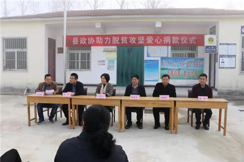 11月13日,在扶溝縣桐丘街道辦事處小胡行政村村委院內(nèi),縣政協(xié)副主席郝寶杰將市、縣政協(xié)委員們捐贈的2萬元錢交到小胡、東五村黨支部書記手中,也將政協(xié)委員對脫貧攻堅(jiān)事業(yè)的愛心傳導(dǎo)到貧困戶的心中。