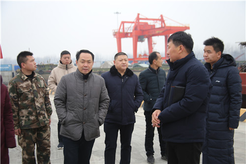 在周口中心港碼頭,程若光向負(fù)責(zé)人了解當(dāng)前港口碼頭設(shè)備的運(yùn)轉(zhuǎn)運(yùn)行情況后,要求港口碼頭要在確保安全生產(chǎn)的情況下開展各項工作。