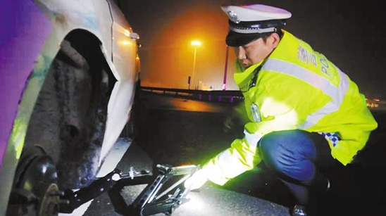 王凱偉通過詢問得知,司機(jī)張先生幫忙送朋友的妻子和孩子回西華老家,不料車輛拋錨在半路上。由于沒有維修經(jīng)驗,張先生將沒了氣的輪胎卸下后無法將備胎安裝上。雨夜高速公路上停車不安全,張先生和車內(nèi)人員都心急如焚。