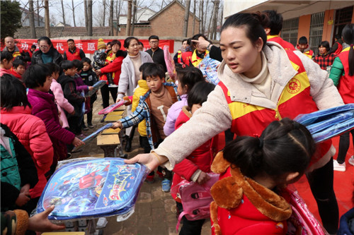 精彩的武術(shù),漂亮的書包、校服……3月3日,太康縣王集鄉(xiāng)新店鋪小學(xué)106名學(xué)生每人收到了一份“大禮包”。當(dāng)日,太康縣委宣傳部和縣文明辦在新店鋪村舉辦太康縣“好人節(jié)”暨學(xué)雷鋒“小手拉大手”志愿服務(wù)活動,30多名志愿者為學(xué)生們發(fā)放了書包、文具和校服等,并深入貧困戶家中幫助打掃庭院衛(wèi)生,受到村民的一致好評。