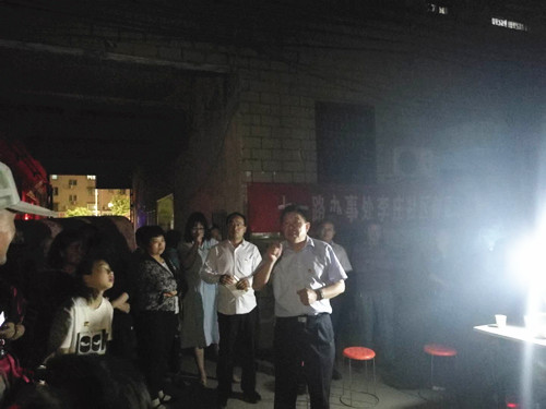 5月21日晚8時,區(qū)委書記李宗喜、區(qū)政協(xié)副主席梁顯棟、高新區(qū)管委會主任李翔與七一路辦事處負(fù)責(zé)人一起,來到位于交通路和工農(nóng)路交叉口附近的陽光嘉苑小區(qū),與居民們就創(chuàng)衛(wèi)工作進(jìn)行面對面的交流。
