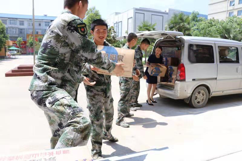 7月29日,太康縣清華園書店負責人李丹駕駛面包車,先后來到縣人民武裝部和消防大隊,為部隊官兵和消防指戰(zhàn)員送來礦泉水等。讓他們在高溫天氣里感受到清華園書店送來的絲絲清涼。“他們平常訓練、滅火很辛苦,作為一個愛心企業(yè),關(guān)心部隊官兵是我應(yīng)盡的義務(wù)?!崩畹ばχf。