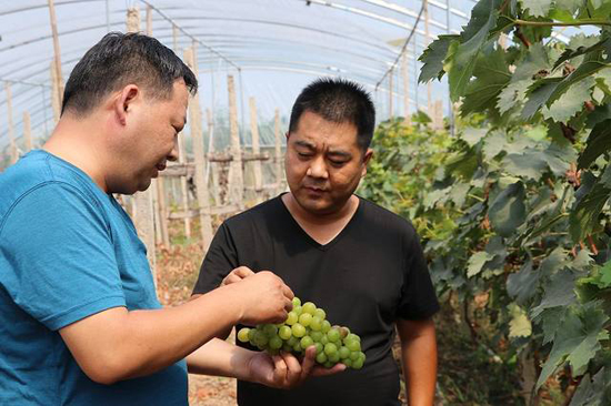 “2016年我們財(cái)政局出資13萬元,幫村民建了這個(gè)15畝的葡萄園,由30戶貧困戶做股東,孫東獻(xiàn)懂葡萄種植技術(shù)由孫東獻(xiàn)來管理,每年帶動(dòng)近十戶貧困戶來葡萄園打工,每戶凈收入4000多元,加上出售葡萄的分紅,每戶凈收入提高到近5000元。并且這是個(gè)可持續(xù)發(fā)展的項(xiàng)目?!瘪v村書記侯俊昌介紹說。