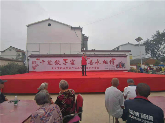 與此同時(shí),在演出現(xiàn)場附近的村委大院內(nèi),由周口市慈孝文化促進(jìn)會、北斗達(dá)教育集團(tuán)等組成的200多名志愿團(tuán)隊(duì)正忙得不亦樂乎,調(diào)餡、包餃子、下鍋、端盤,兩個(gè)多小時(shí)內(nèi),他們精心包出20000多個(gè)愛心水餃。11時(shí)30分,餃子宴正式開始,老人們一邊吃著水餃一邊觀看者演出,喜笑顏開,呈現(xiàn)出一片相親相敬的溫馨畫面。