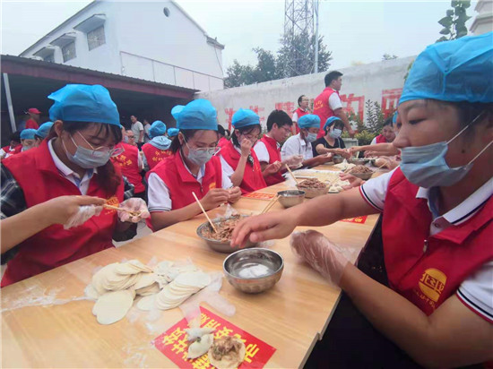 當(dāng)天上午,一場由周口市紀(jì)委監(jiān)委駐杜崗村工作隊(duì)聯(lián)合紅花鎮(zhèn)、杜崗村、周口北斗達(dá)教育集團(tuán)共同舉辦的孝老餃子宴,在該村文化廣場別開生面地拉來序幕?!按謇锼?0歲(含60歲)以上的老人今天中午都到文化廣場來吃餃子啊,市紀(jì)委和愛心企業(yè)來為我們包餃子啦……”8時(shí)剛過,杜崗村黨支部書記李長青就通過村里的大廣播每隔半小時(shí)播報(bào)一次,生怕哪位老人忘了這檔子事兒。