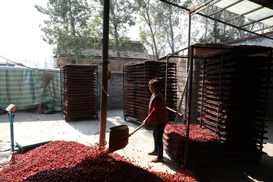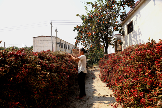 “大伙兒別著急啊,讓我喝口水喘喘氣再來(lái)給你們的小辣椒過(guò)磅……”在西華縣艾崗鄉(xiāng)苗里崗行政村一家村辦炕椒廠院內(nèi),老板郭有明忙得汗流浹背。來(lái)賣辣椒的村民隊(duì)伍都排到院外了,他擰開一瓶礦泉水喝個(gè)精光后又忙起來(lái)。