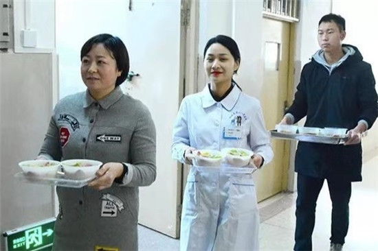 餃子煮好,盛入碗內(nèi),端入病房,親手送到患者手中,看到患者品嘗餃子時(shí)的開心樣子,醫(yī)護(hù)人員從心里笑到了臉上。