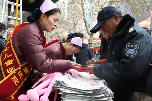 18日上午9時(shí)30分,位于新建街的周口儷嬰婦女兒童醫(yī)院門前喜氣洋洋,張燈結(jié)彩,熱鬧非凡,儷嬰婦女兒童醫(yī)院邀請(qǐng)市書(shū)協(xié)、川匯區(qū)書(shū)協(xié)的書(shū)法家們,在門前為“送福送健康暨書(shū)法家義寫(xiě)春聯(lián)”活動(dòng)舉行了簡(jiǎn)短的儀式,隨即活動(dòng)展開(kāi),一邊是儷嬰婦女兒童醫(yī)院的專家們將坐診臺(tái)搬到門前,細(xì)致地為來(lái)往的居民免費(fèi)量血壓、把脈等義診,一邊擺下10多張桌子和筆墨紙硯,中國(guó)書(shū)協(xié)會(huì)員游保峰,著名書(shū)法家、川匯區(qū)書(shū)協(xié)終身名譽(yù)主席李大慶,書(shū)法家馮干敏、李輝、李國(guó)斌及川匯區(qū)書(shū)協(xié)主席李尊杰,市書(shū)協(xié)副主席劉廣巖,川匯區(qū)書(shū)協(xié)副主席兼秘書(shū)長(zhǎng)杜忠義,副主席曾祥峰、何楠,著名書(shū)法家寇成義等書(shū)法家們,展開(kāi)大紅的紙張,揮毫潑墨,飄著墨香的福字和一對(duì)對(duì)大紅的春聯(lián),帶著新春的祝福,送到居民手里,一波波居民到自己喜愛(ài)的書(shū)法家面前,喜討福字和春聯(lián),開(kāi)心的喜悅洋溢著臉上……