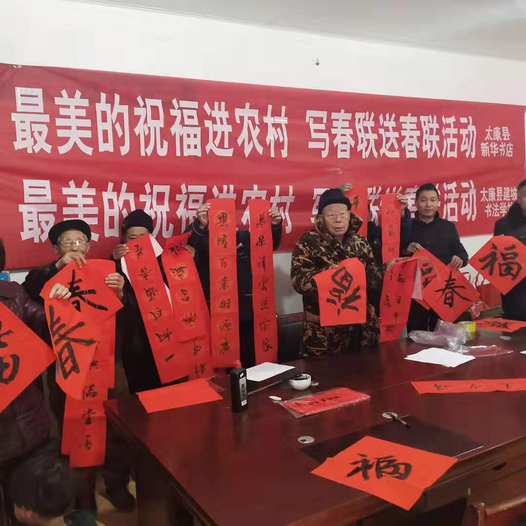 小小春聯(lián),給人們帶來了歡樂,帶來了希望。不僅是書法家們帶來了歡樂,也是新華書店為村民送出的誠摯祝福?!拔覀兇鍙膩頉]舉辦過這樣大型的活動(dòng),我們不僅可以一睹書法家風(fēng)采,又可以拿回他們的作品,真是太棒了?!币晃浑p手拿對聯(lián)的村民開心地說道。