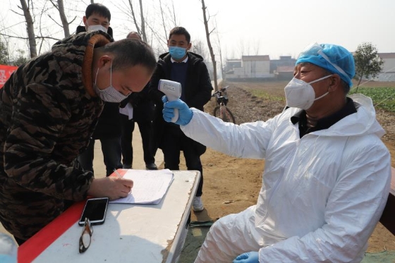 起初,苑統(tǒng)俊配合村干部在村里宣傳疫情防控政策、方法,1月25日,我省啟動(dòng)一級(jí)應(yīng)急響應(yīng),港區(qū)迅速做出響應(yīng),在轄區(qū)內(nèi)各個(gè)村莊社區(qū)設(shè)置疫情監(jiān)控點(diǎn),限制人員流動(dòng),全天候監(jiān)測(cè)進(jìn)出人員身體狀態(tài)。苑統(tǒng)俊擔(dān)起監(jiān)控點(diǎn)村醫(yī)的職責(zé),負(fù)責(zé)該村一至四組的疫情防控。他每天騎電動(dòng)車前往孫莊村監(jiān)測(cè)點(diǎn)值守,為過(guò)往人員測(cè)量體溫、觀察外地返鄉(xiāng)人員狀態(tài)、登記觀察正處在隔離期的從湖北、武漢返鄉(xiāng)人員體溫?cái)?shù)據(jù),為鄉(xiāng)村干部開展防控工作提供技術(shù)支持。
