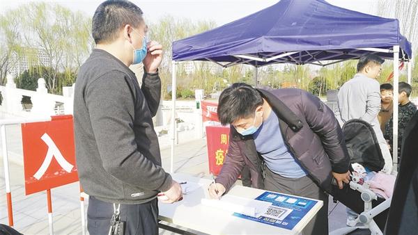 本報訊 3月10日,天氣晴朗,暖意融融,關(guān)閉一個多月的周口公園開園迎客第二天,記者在周口公園看到,游客都戴著口罩,經(jīng)登記、測溫后依次入園,園內(nèi)秩序井然。