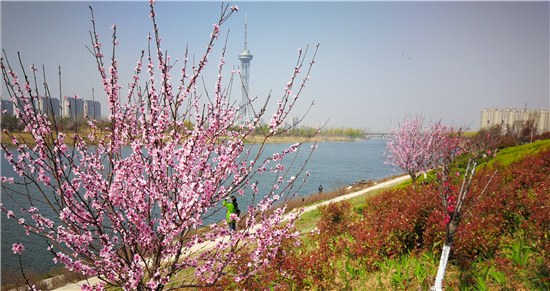 3月22日,周口市沙潁河碧波蕩漾,兩岸處處綠樹環(huán)繞,花兒姹紫嫣紅,兩岸綠影婆娑,一幅五彩繽紛春景的悅目畫面。