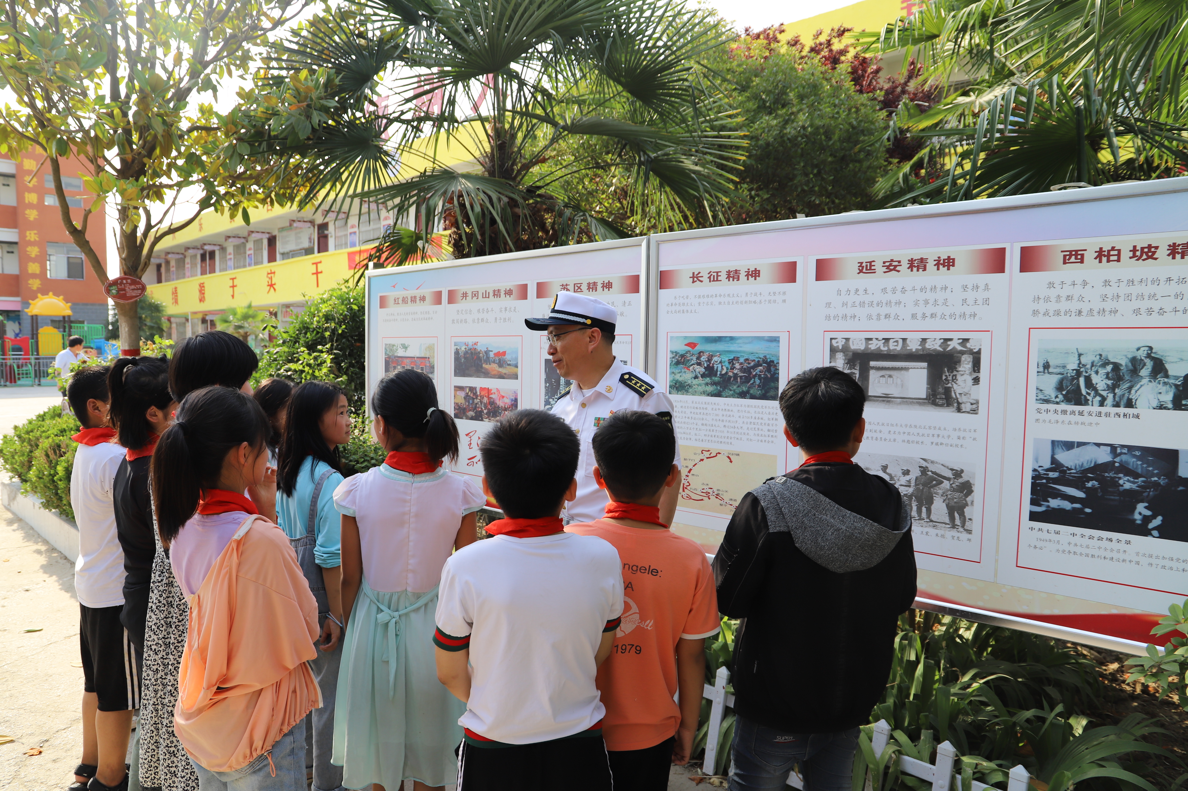 少年強則國強。眼下正是脫貧攻堅決戰(zhàn)決勝的關(guān)鍵時刻,鄲城縣人民武裝部為了強化幫扶村脫貧致富的內(nèi)生動力,全面斬斷“窮根”、栽下“富苗”,該部斥資數(shù)十萬元加強對東風鄉(xiāng)大趙小學的幫扶力度,硬化、綠化、美化、亮化加紅色文化。該縣人武部部長董連江、政委金仁旺經(jīng)常到學校講革命精神,讓少先隊員了解革命歷史、感受革命傳統(tǒng),增強砥礪前行的理想信念,不忘初心跟黨走,一顆紅心永向黨,將革命精神傳承下去并發(fā)揚光大,讓紅色文化成果助力“中國夢”的實現(xiàn)。圖為鄲城縣人民武裝部政委金仁旺向少先隊員講述革命精神。