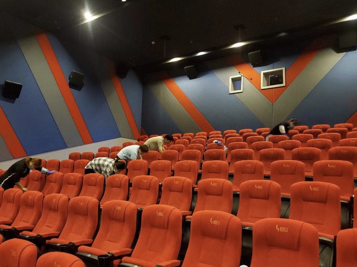 “停業(yè)六個月,終于等來了即將開門的喜訊?!苯ㄐ侣芬患矣俺枪ぷ魅藛T說。由于防疫需要,自1月24日以來,一直處于停業(yè)狀態(tài)。7月20日上午,記者來到影院看到工作人員正在對觀影設備進行檢測、調(diào)試,并對影廳、公共區(qū)域等處進行深度防潮防霉、消毒工作,以安全整潔的環(huán)境迎接影院重開。
