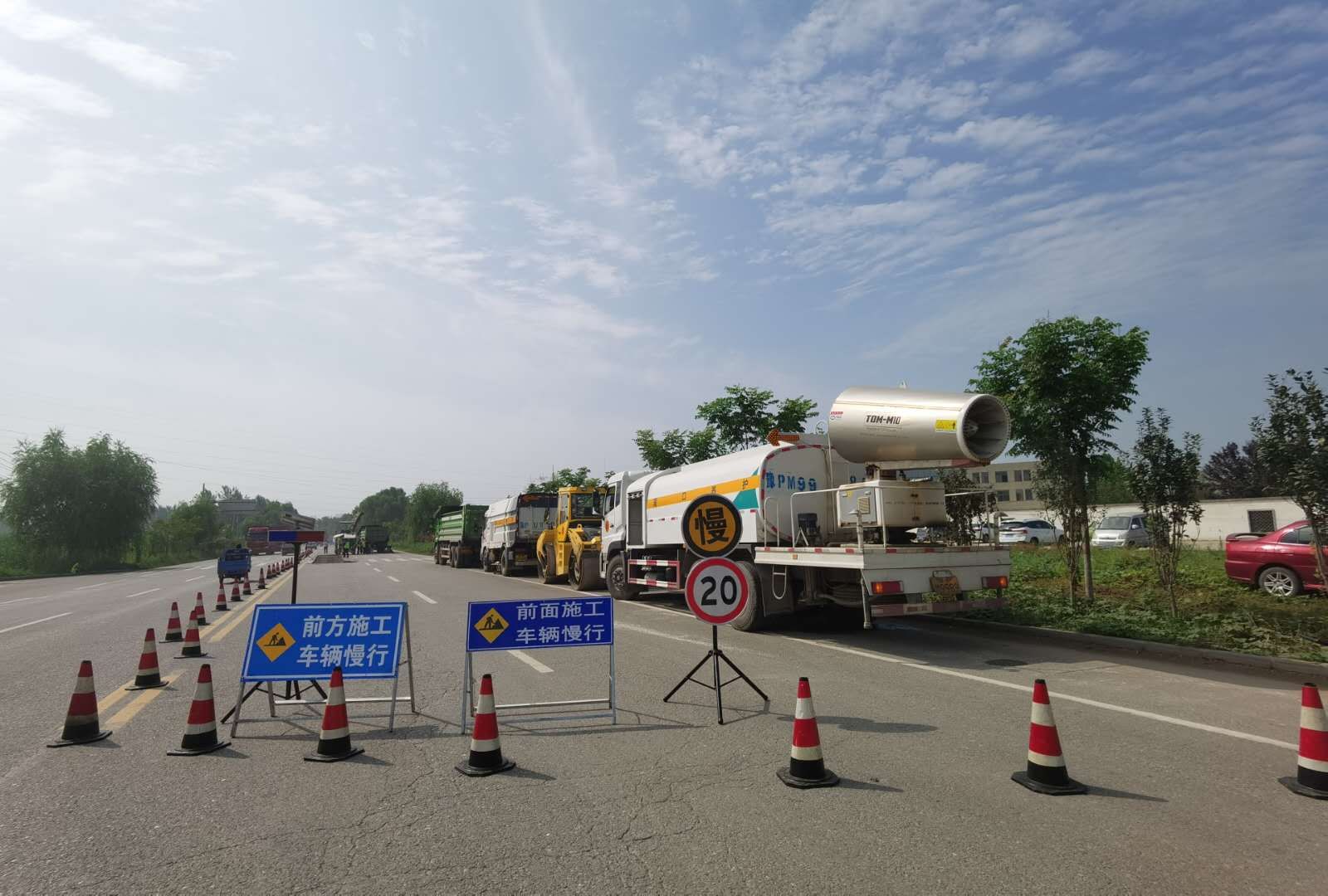 接到搶險任務后,市公路橋梁應急搶險中心迅速啟動,在較短的時間內(nèi)到達現(xiàn)場進行搶險作業(yè),施工人員按照公路養(yǎng)護安全作業(yè)規(guī)程設(shè)置了作業(yè)控制區(qū),對交通進行了有效管制疏導;施工搶修人員以人機結(jié)合的方式對坑槽病害進行了填補和修整。演練期間人員著裝規(guī)范,交通警示標志、告示牌、作業(yè)機械設(shè)備齊全、完好。操作流程符合作業(yè)規(guī)范,現(xiàn)場安全文明施工措施到位,展示了良好的應急事件處置能力。此次演練參戰(zhàn)干部職工共計34人,指揮車1輛、銑刨機、攤鋪機、壓路機、抑塵機、霧炮車等機械設(shè)備參與應急演練。有效檢驗了在遇到突發(fā)事件時組織、協(xié)調(diào)、配合的快速反應能力以及熟練處置突發(fā)事件的方法、過程,進一步驗證了公路水毀病害應急預案的可執(zhí)行性,為今后突發(fā)公路安全事故應急救援積累了寶貴的實戰(zhàn)經(jīng)驗。