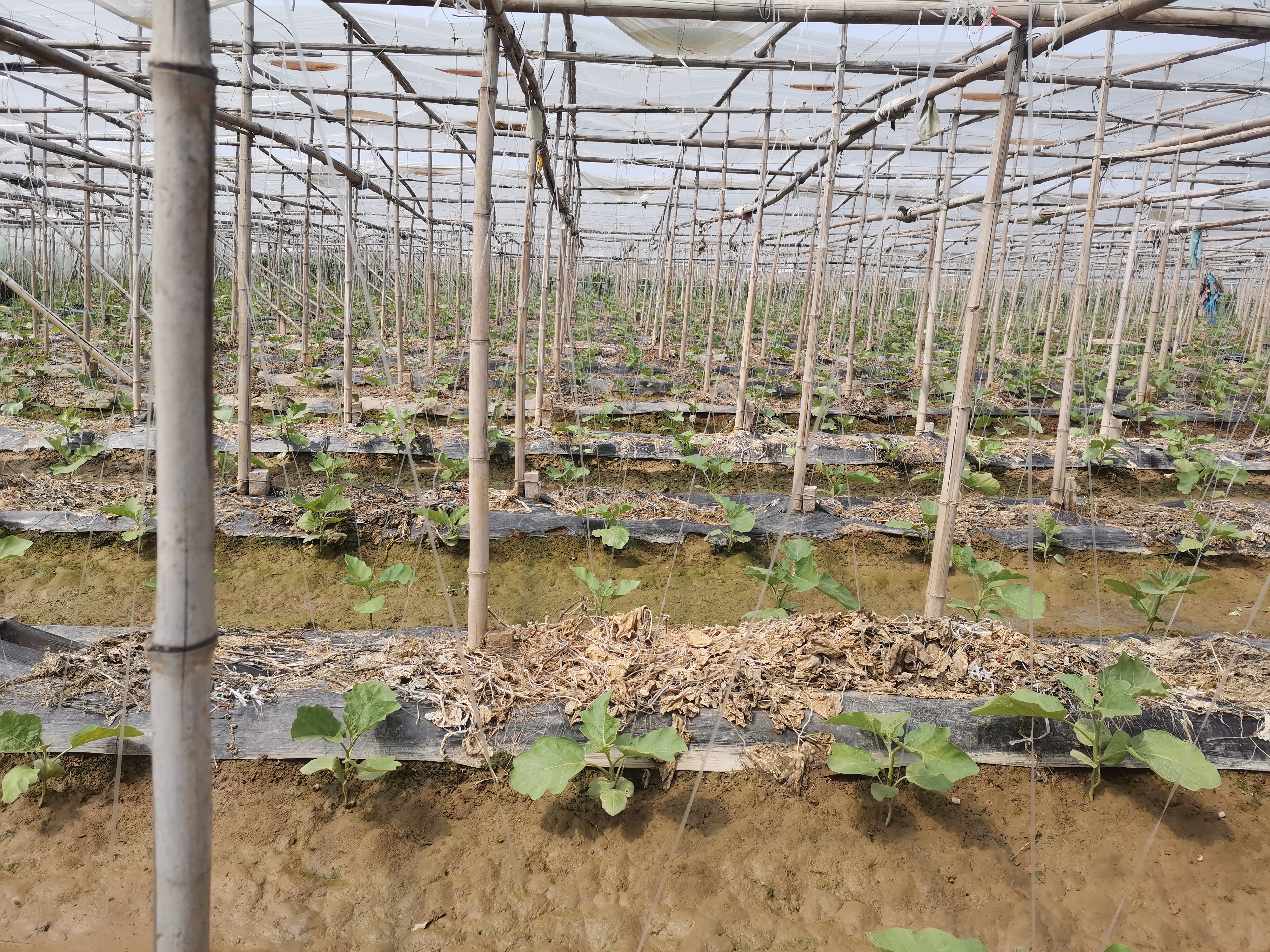 “春爭日,夏爭時”,又到一年農(nóng)忙時。近日,在曹里鄉(xiāng)西吳行政村,架構、鋪膜……一個個新定植的巨型棚拔地而起,占地2000多畝的巨型棚蔬菜園區(qū),宛如白色的海洋。大棚內(nèi)茄子苗生機盎然,田間地頭、種植大棚里處處呈現(xiàn)一派忙碌的景象。
