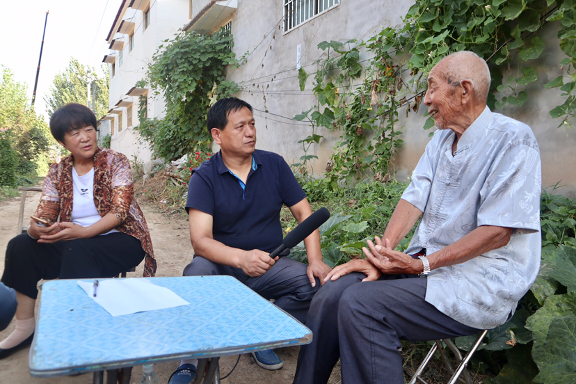 在中國人民抗日戰(zhàn)爭勝利75周年之際,扶溝縣新四軍研究會、吉鴻昌精神研究會名譽(yù)會長張敦、何俊山、尹發(fā)展和秘書長李偉,扶溝縣唯伊傳媒、扶溝縣天和文化傳媒負(fù)責(zé)人與縣融媒體記者一起,于9月4日驅(qū)車趕往縣城南15公里的革命老區(qū),有豫東小延安之稱的扶溝縣練寺鎮(zhèn)下坡行政村何樓村,走訪抗日老戰(zhàn)士、新四軍老戰(zhàn)士何天順。