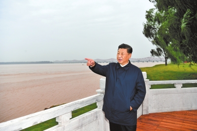 2019年9月17日下午,習(xí)近平在鄭州黃河國(guó)家地質(zhì)公園,眺望黃河鄭州段。新華社記者 謝環(huán)馳 攝