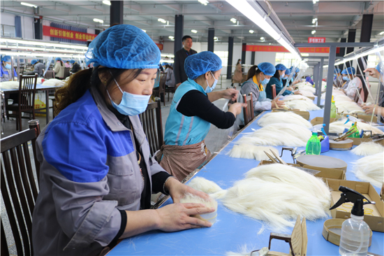 “從簡單的梳羊毛到如今做高檔化妝刷,從產(chǎn)業(yè)鏈的末端做到頂端,從養(yǎng)家糊口到賺外匯,經(jīng)過多年的滾動發(fā)展,鹿邑縣硬是把尾毛化妝刷這種‘小手藝’做成了助推縣域經(jīng)濟高質量發(fā)展的‘大產(chǎn)業(yè)’。目前,全縣大大小小的化妝刷企業(yè)達1000多家,尾毛出口總量占全國化妝刷原毛出口的80%,年產(chǎn)羊毛3000多噸、尼龍毛9000多噸,生產(chǎn)各類化妝刷1.5億套,產(chǎn)品遠銷20多個國家和地區(qū)。另外,作為尾毛的衍生產(chǎn)業(yè),羊毛衫加工產(chǎn)業(yè)近幾年的異軍突起,更是激活了全縣創(chuàng)業(yè)就業(yè)的一池春水。統(tǒng)計數(shù)字顯示,近幾年,鹿邑縣持續(xù)圍繞尾毛化妝刷特色產(chǎn)業(yè),強鏈延鏈補鏈,開展精準招商,化妝刷及配套企業(yè)已發(fā)展到135家,實現(xiàn)產(chǎn)值50多億元,出口創(chuàng)匯21億;羊毛衫紡織企業(yè)發(fā)展到54家,有電腦織機6500臺,年產(chǎn)各類針織服裝6000萬件,使鹿邑成為河南省最大的化妝刷生產(chǎn)基地、羊毛衫加工基地,帶動全縣7.5萬人創(chuàng)業(yè)就業(yè)。