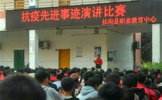 這是扶溝縣職業(yè)教育中心2020級美術(shù)班賈珍珍同學(xué)的激情演講。他的演講,感染了在場的1000余名師生。11月14日,為落實扶溝縣教體局《關(guān)于加強(qiáng)新時代中小學(xué)思想政治理論課教師隊伍建設(shè)工作的實施方案》中“發(fā)掘地方資源,開展先進(jìn)人物和紅色教育進(jìn)課堂活動,讓思政課成為有溫度的課”的具體要求,學(xué)校思政處組織開展了以歌頌該縣人民醫(yī)院護(hù)士劉海燕先進(jìn)事跡為主題的“抗疫先進(jìn)事跡”演講比賽。