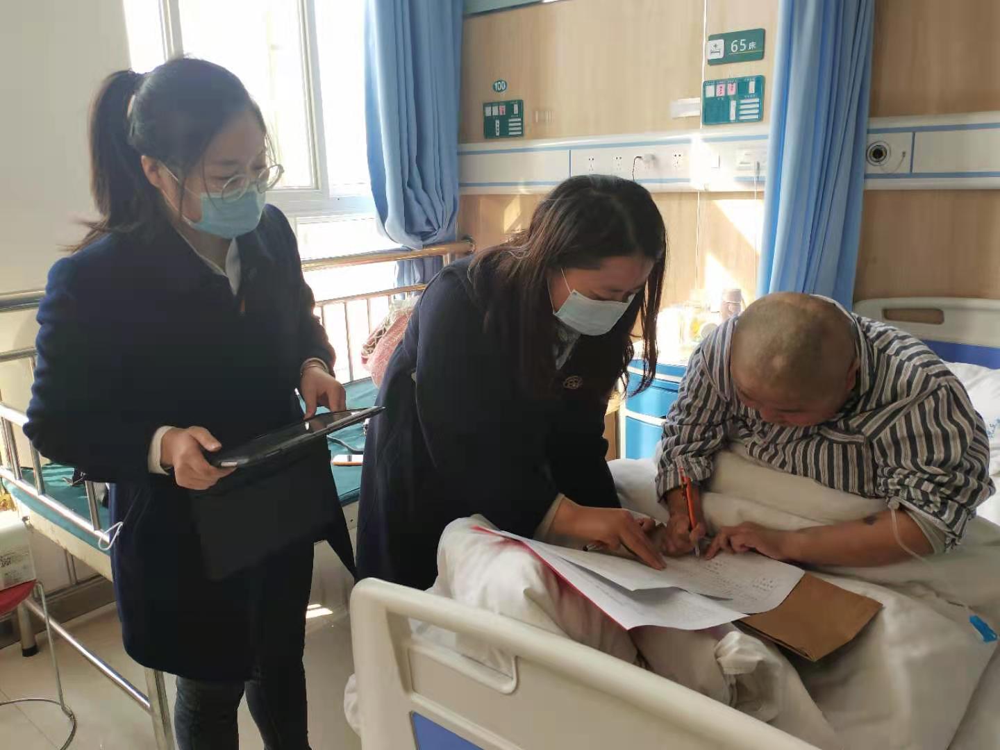 為了更好地服務(wù)群眾,沈丘縣婦聯(lián)堅(jiān)持特事特辦,針對(duì)正在縣人民醫(yī)院腫瘤科接受治療的卞路口鄉(xiāng)小郭莊村的盧彩英,縣婦聯(lián)副主席段金花聯(lián)系了中銀富登村鎮(zhèn)的工作人員,到病房現(xiàn)場(chǎng)為其辦理了領(lǐng)取救助金的相關(guān)手續(xù)。