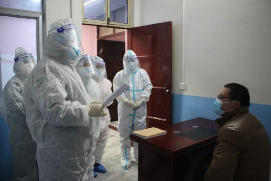 演練場(chǎng)景模擬一位從石家莊返鄉(xiāng)探親的發(fā)熱病人李某來(lái)醫(yī)院就診,預(yù)檢分診處值班人員查驗(yàn)健康碼顯示紅色,體溫顯示38.1℃,給病人佩戴外科口罩并再次用體溫計(jì)測(cè)體溫,體溫顯示38.5℃,詳細(xì)詢問(wèn)流行病學(xué)史及患者信息并進(jìn)行登記。