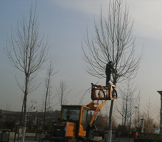 1月29日,在市城鄉(xiāng)一體化示范區(qū)政通路上,有工作人員正在修剪樹木。工作人員說,修剪樹木的最佳時期是冬季,一是樹上沒有葉子,這樣可以更輕松地查看樹的結(jié)構(gòu);二是冬季樹木正在休眠,在睡眠狀態(tài)下,樹木受到修剪的沖擊較小。圖為工作人員正在修剪路邊的行道樹。(周口日報·周道客戶端記者 馬月紅攝)