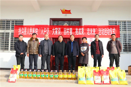 2月8日上午,扶溝縣人民醫(yī)院黨委書(shū)記、院長(zhǎng)何躍東,副院長(zhǎng)徐冰、王月鳳、齊建平,帶著米、食用油等慰問(wèn)品到曹里鄉(xiāng)刁灣村開(kāi)展“話脫貧、感黨恩、奮進(jìn)新時(shí)代”主題活動(dòng),送去新春的祝福。
