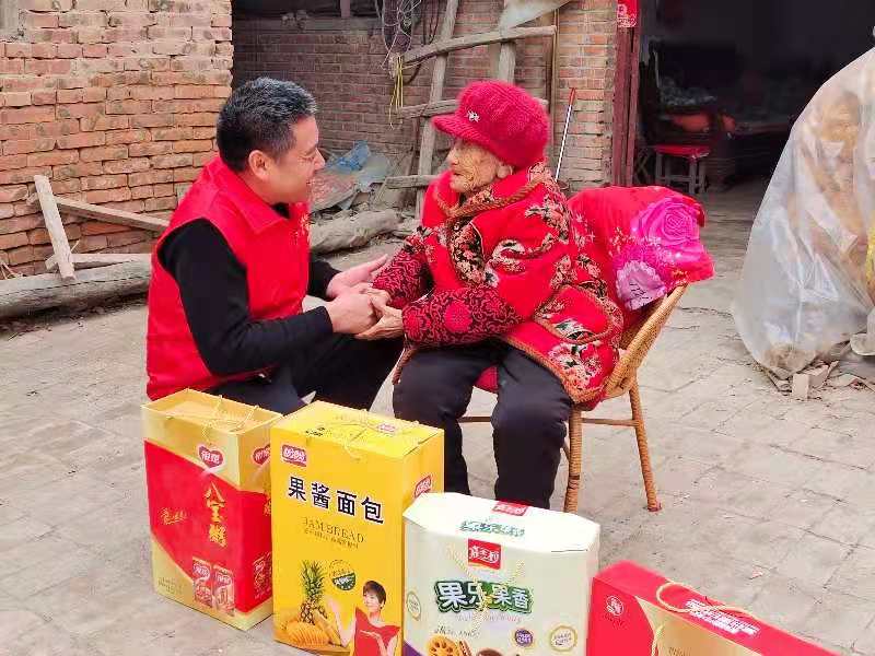 按照中國民間傳統(tǒng)習(xí)俗,新春伊始,人們都要穿戴新衣新帽走親訪友,拜年送祝福。2月12日,農(nóng)歷正月初一一大早,遜母口鎮(zhèn)心連心雷鋒服務(wù)隊(duì)隊(duì)長張新靜帶領(lǐng)志愿者張建設(shè)、劉賀敬、馮茹愿、賈衛(wèi)蒙、馮柯馨、歐樣等人就敲開了106歲的張占花家門。當(dāng)日,他們帶著核桃牛奶、面包、八寶粥,專門來為老人來拜年。 “新靜他們來了……”一聽聲音,張占花老人就猜到了是誰。經(jīng)過去年一年的幫扶,張新靜等人已經(jīng)與照顧占花老人成了“熟人”。“這些孩子們可沒少幫俺,又送物又幫俺打掃庭院”??吹街驹刚邆兊牡絹?,張占花老人的臉上掛滿笑容。