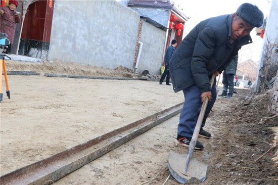 在宋河鎮(zhèn)劉橋村,支部書記張殿魁正在帶領(lǐng)村民平整路面?!拔覀兇宓闹鹘值缼啄昵熬屯怂嗦罚遣糠中∠镒右蚪?jīng)費(fèi)不足一直沒有修通?!睆埖羁f,年初鎮(zhèn)黨委組織召開全鎮(zhèn)在外返鄉(xiāng)人士?jī)?yōu)秀代表座談會(huì),得到了在外鄉(xiāng)賢的積極支持,部分鄉(xiāng)賢捐款,帶動(dòng)村內(nèi)群眾籌集費(fèi)用,現(xiàn)在水泥路即將覆蓋全村大街小巷。