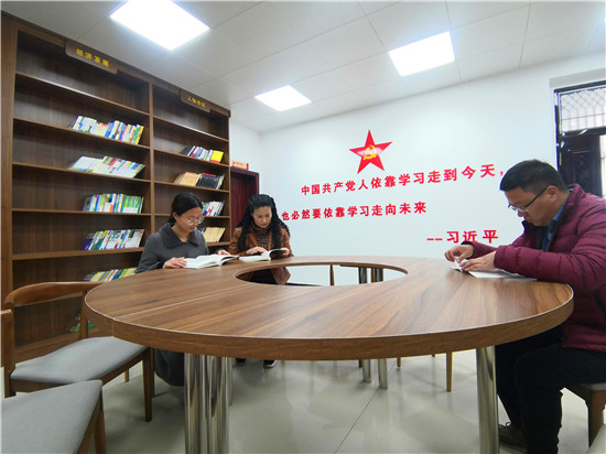 3月10日午飯過后,西華縣遲營(yíng)鎮(zhèn)財(cái)稅所工作人員馮艷偉、人大代表聯(lián)絡(luò)站工作人員邵楓然、黨政辦工作人員賈斐三人不約而同來到政府大院二樓剛剛升級(jí)改造完成的遲營(yíng)鎮(zhèn)黨?!包h建書吧”,坐在一起讀起黨史來。