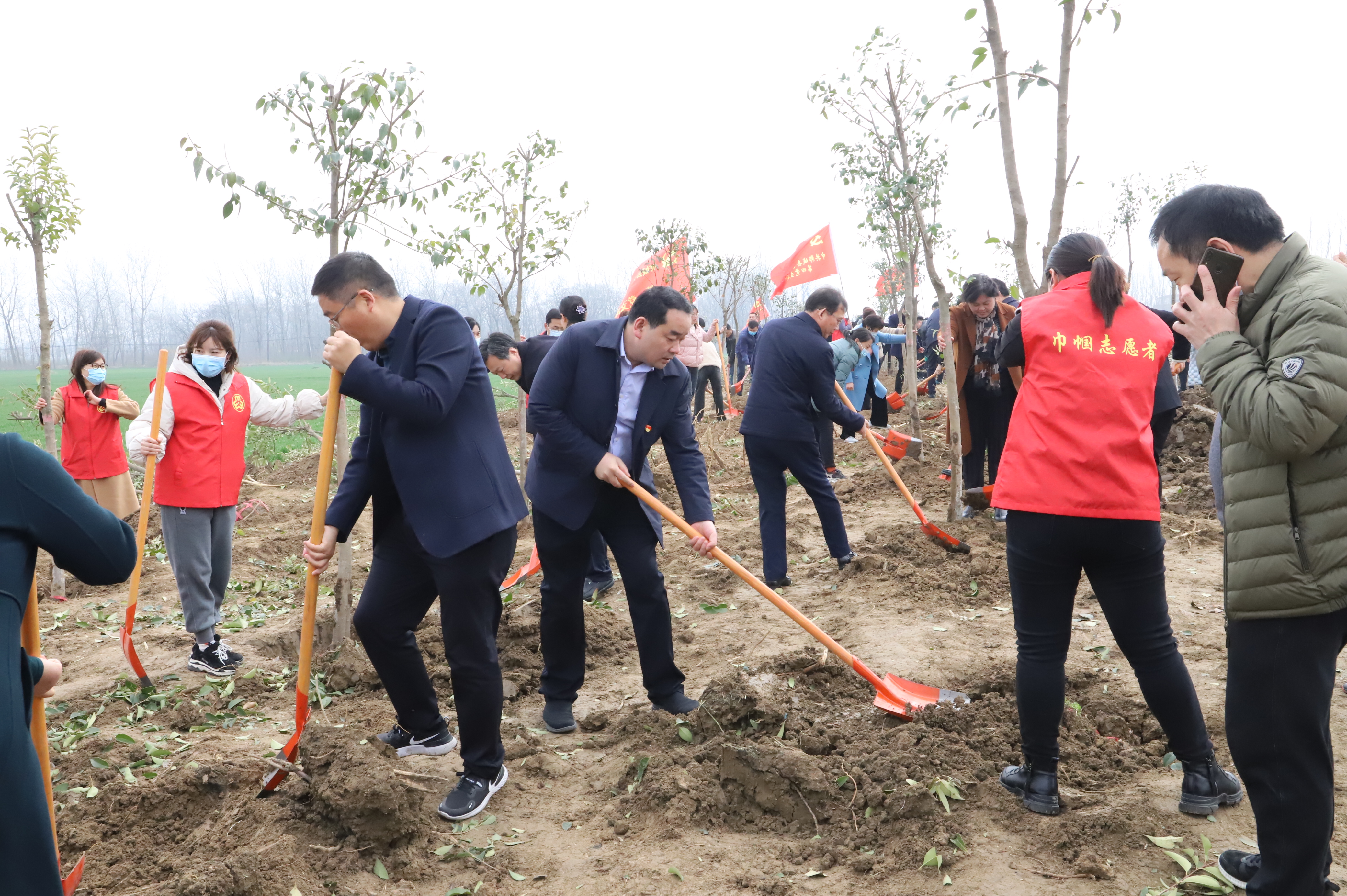 草長鶯飛,春回大地。3月12日,在第43個(gè)植樹節(jié)之際,全市掀起義務(wù)植樹熱潮,黨員干部、志愿者、市民踴躍參與義務(wù)植樹活動。扶正樹苗、揮鍬培土、分層踩實(shí)、堆起圍堰、提水澆灌,認(rèn)真地完成著每一道工序,栽下了一棵棵樹苗,為改善生態(tài)環(huán)境、綠化美麗家園種下了一棵棵綠色的希望。圖為鄲城縣義務(wù)植樹現(xiàn)場。
