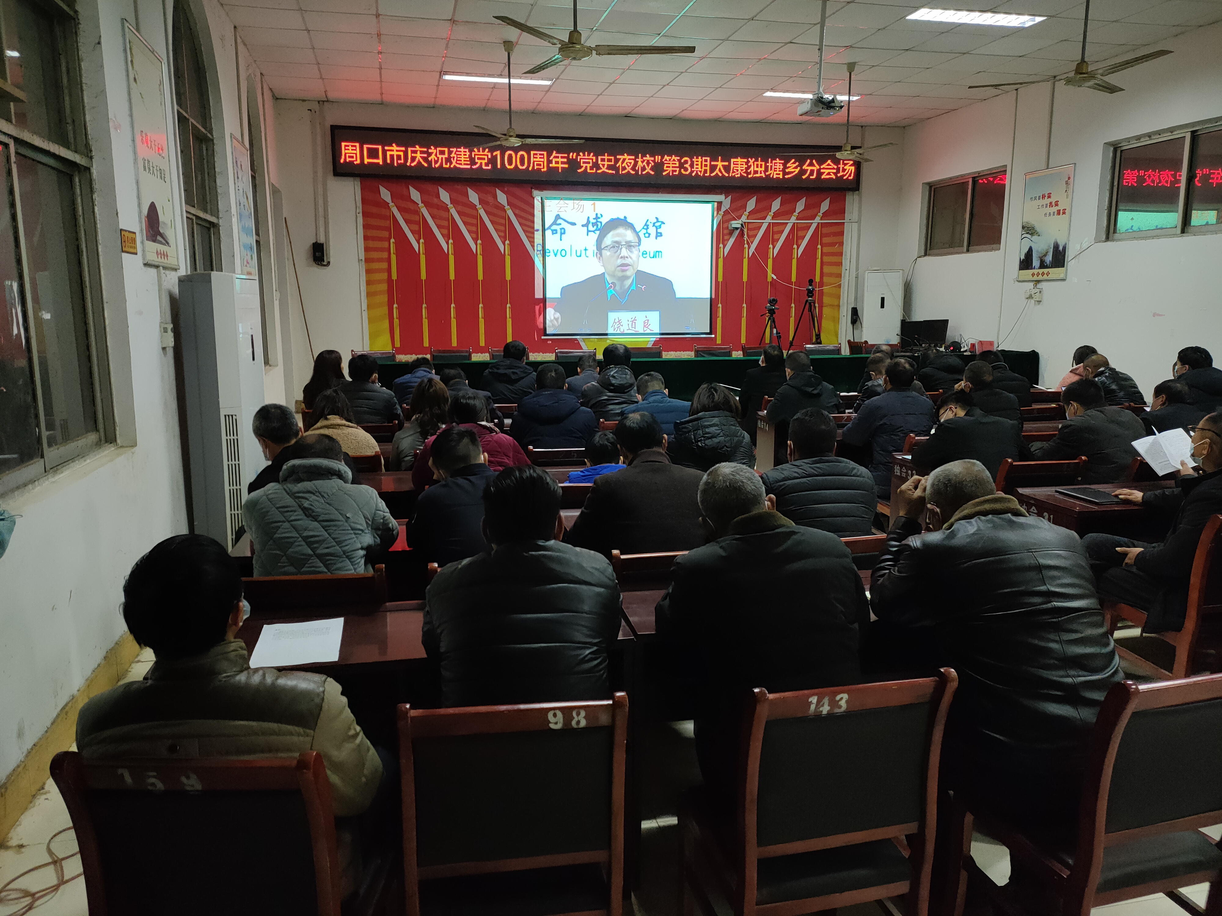 3月18日晚,周口市舉辦慶祝中國共產(chǎn)黨成立100周年“黨史夜?!钡谌趯n}講座。太康縣獨(dú)塘鄉(xiāng)組織鄉(xiāng)領(lǐng)導(dǎo)班子、鄉(xiāng)政府機(jī)關(guān)黨支部全體黨員、34個(gè)行政村支部書記、鄉(xiāng)直機(jī)關(guān)負(fù)責(zé)人、各行政村全體黨員、兩委干部在鄉(xiāng)政府會(huì)議室和各行政村分會(huì)場(chǎng)收聽收看。