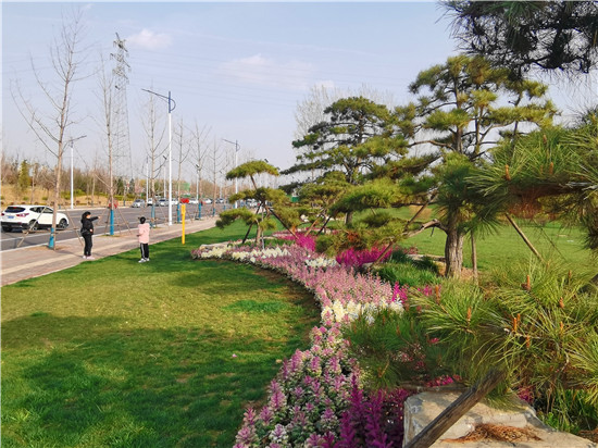 自從沙潁河改造后,沿河步道蜿蜒曲折,微地形高低錯(cuò)落,兩側(cè)栽有香樟、槐樹、雪松、石楠等喬灌木,碧桃、櫻花等彩色樹種夾雜其間,營(yíng)造出河岸飄渺悠揚(yáng)的意境。