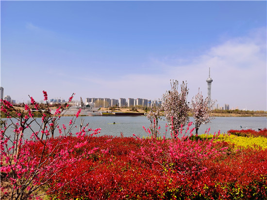 近日,在春花和藍(lán)天碧水映襯下,沙潁河兩岸桃花、海棠、石楠、櫻桃花競(jìng)相綻放,沙潁河兩岸美如畫。