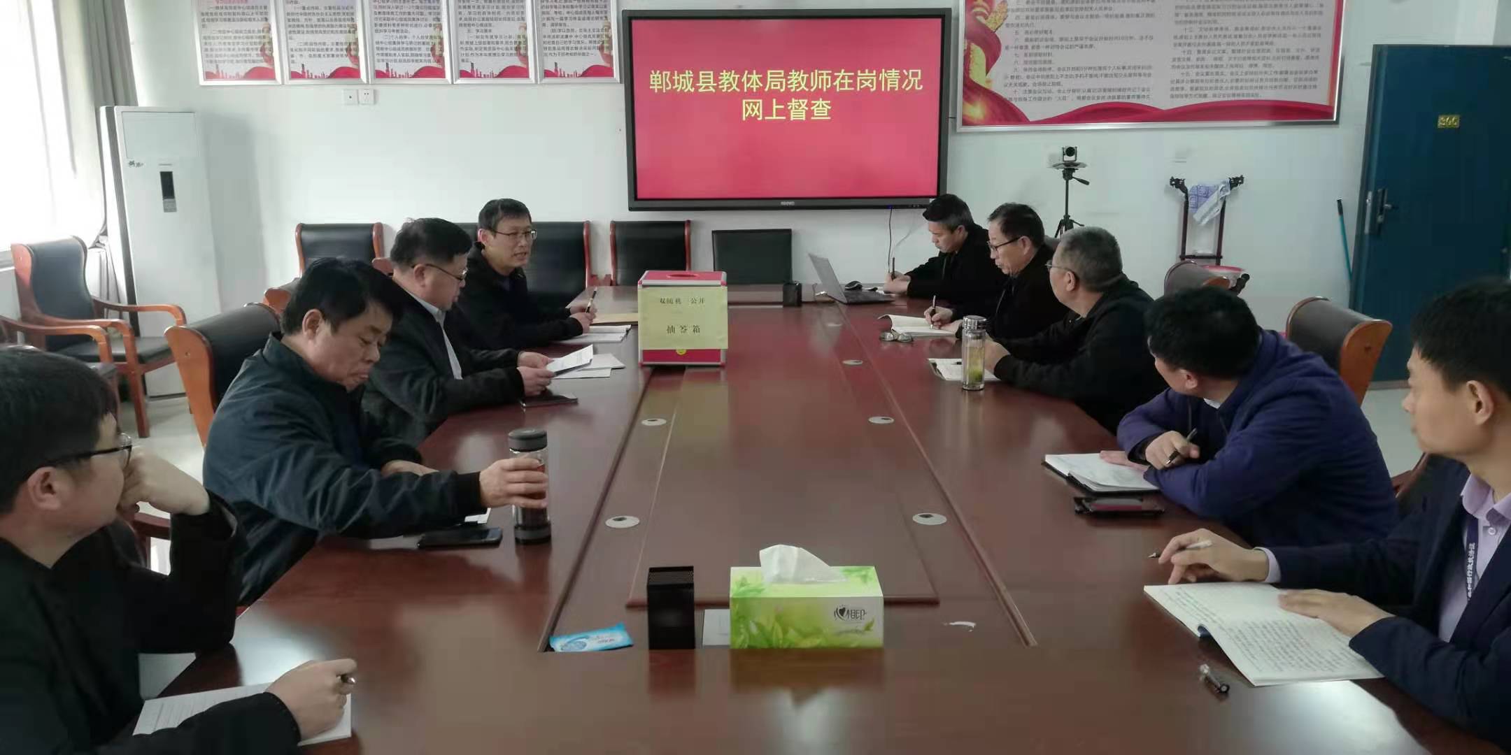 抽查時(shí),紀(jì)檢組、督導(dǎo)室、辦公室、人事股、目標(biāo)辦等相關(guān)股室負(fù)責(zé)人和工作人員全部到崗到位,從抽簽箱中隨機(jī)抽出三個(gè)球號(hào)組成一組數(shù)字,然后從《隨機(jī)抽查檢查對(duì)象名錄庫(kù)》中確定被督查學(xué)校。網(wǎng)上督查人員接通被督查學(xué)校負(fù)責(zé)人或者教職工“企業(yè)微信”,通過(guò)視頻形式督查教師在崗信息公示情況、教師到崗情況、平時(shí)學(xué)校(中心校)對(duì)教師管理教育情況等,并同步與人事(師訓(xùn))教職工(特崗教師)信息系統(tǒng)比對(duì)。出差、請(qǐng)假等須當(dāng)場(chǎng)提供相關(guān)佐證材料。對(duì)疑似存在問(wèn)題的,紀(jì)檢、人事部門(mén)當(dāng)即啟動(dòng)線下復(fù)核程序。