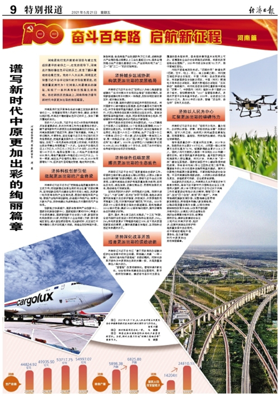 河南是我們黨開展革命活動與建立黨組織最早的省份之一,在黨的領導下,河南這片鐫刻著紅色印記的沃土,發(fā)生了翻天覆地的滄桑巨變。黨的十八大以來,河南堅定沿著習近平總書記指引的方向奮勇前進,把高質量發(fā)展作為1億河南人民最根本的福祉,實現(xiàn)了一系列具有標志性意義的突破。站在新的歷史起點上,河南將奮力譜寫新時代中原更加出彩的絢麗篇章。
