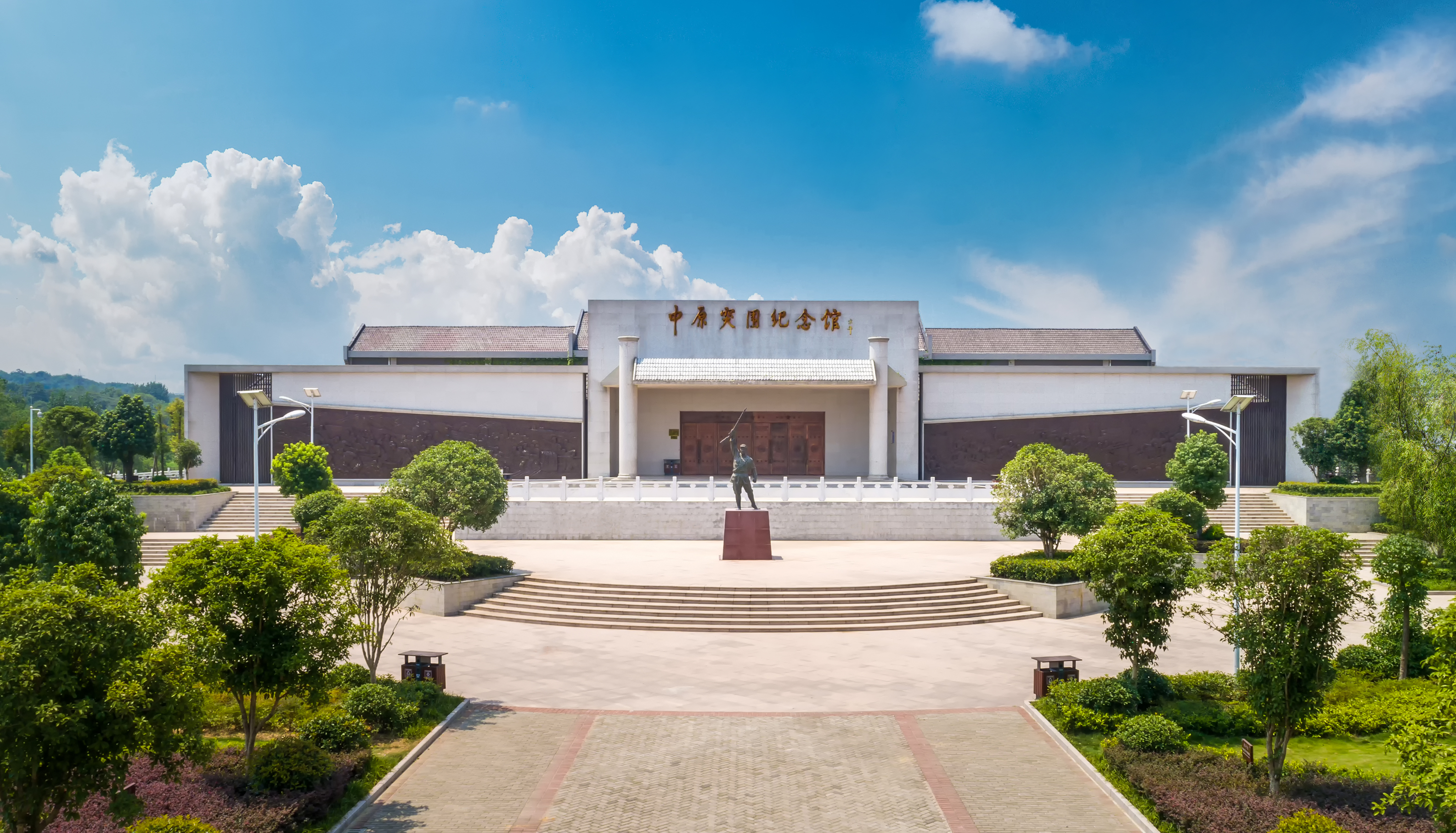 初夏時節(jié),位于大悟縣宣化店鎮(zhèn)的中原突圍紀念館,大批參觀者排隊進入。紀念館前,一尊年輕戰(zhàn)士的塑像巍然挺立,戰(zhàn)士左手拳頭緊握,右手高舉長槍,神情激昂剛毅,讓人肅然起敬。